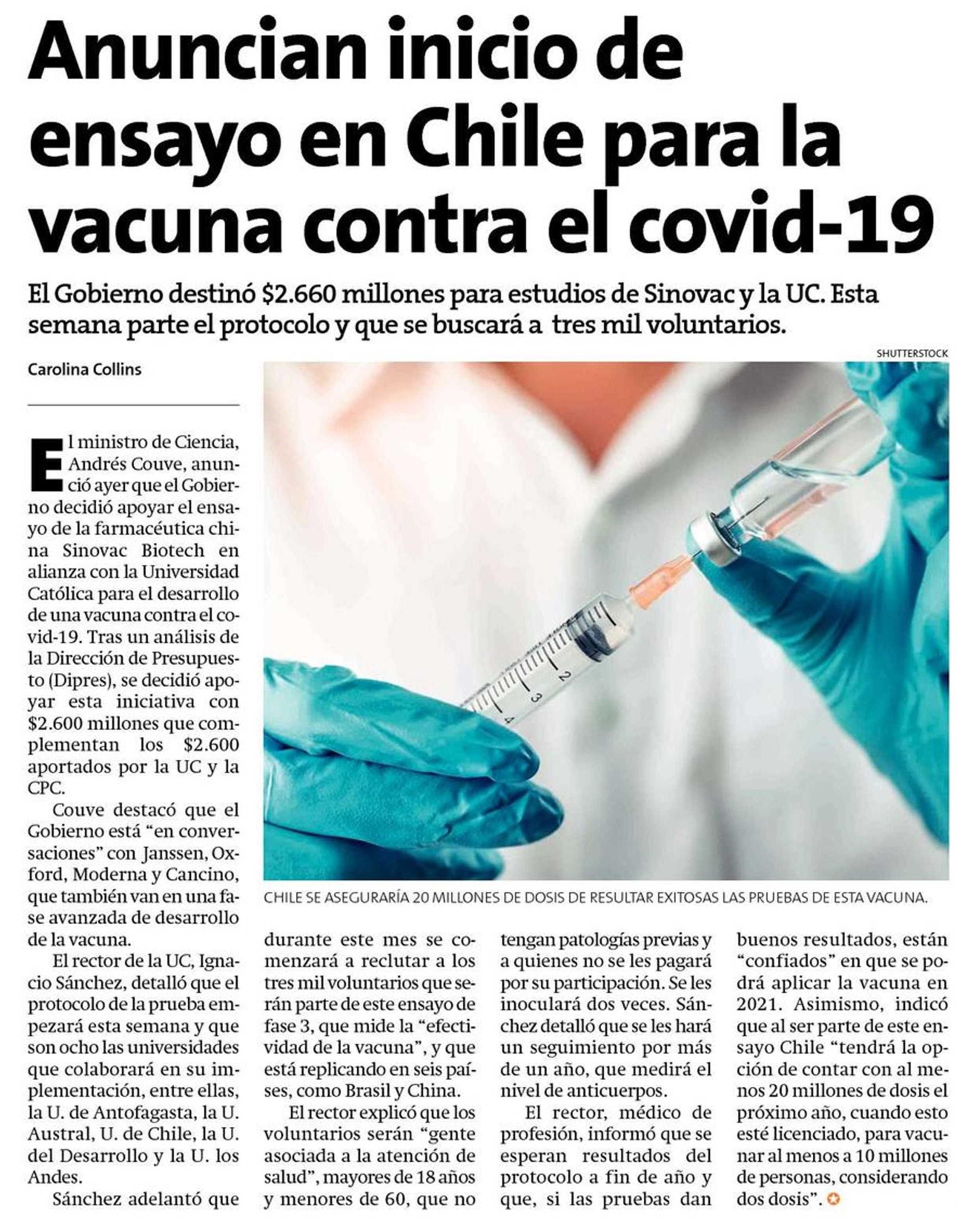 Chile Comienza Ensayo De Vacunas Contra El Nuevo Coronavirus Vacuna Covid Chile Voluntarios